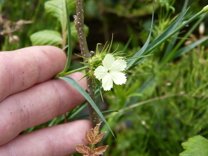 Die Farbe kommt schlecht rüber, aber diese kleine Nelke leuchtet gelb aus dem Beet. Der Name ist mir leider abhanden gekommen.