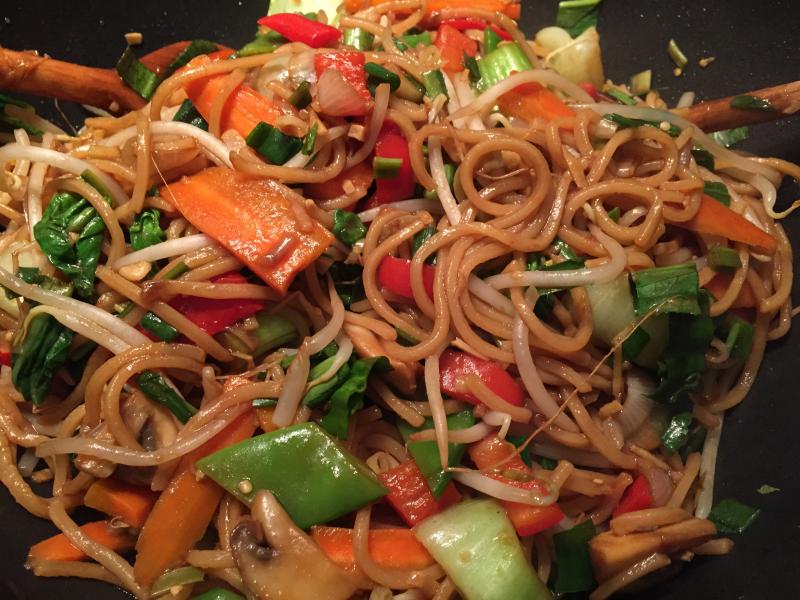 hier gab es asiatisch inspiriertes gemüse mit bratnudeln aus dem wok...