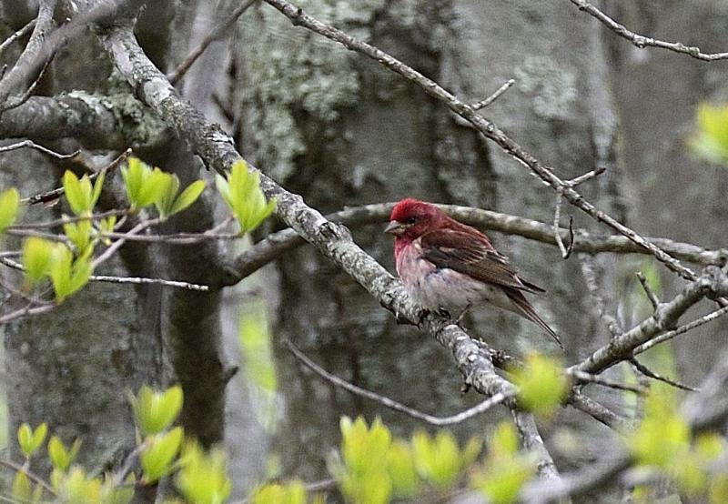 Hier ein 100-%-Ausschnitt vom vorherigen Foto.Dürfte ein Purpurgimpel sein.