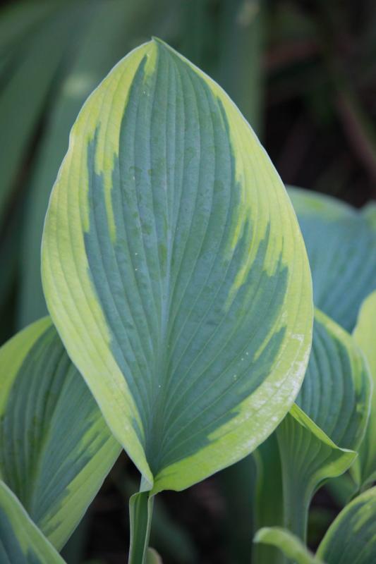 Zum Vergleich ein Blatt der Hosta 'Alex Summers'. Die Randfarbe wäre ziemlich identisch...