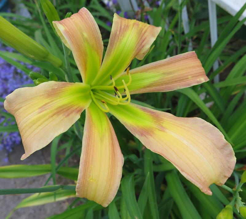 Das ist wirklich schade, denn die Blüte ist sehr schön. Lautet das Schicksal also "Kompostanien" oder "Adios Amigo" beim noch anstehenden letzten Besuch im Lehmgarten?Ein einst geliebter Sämling hat auch wieder geblüht, der Berleyer Holde Abendstern. Leider hat er sich disqualifiziert, weil er nicht jedes Jahr blüht und weil das Laub bei Trockenheit zu schnell gilbt.