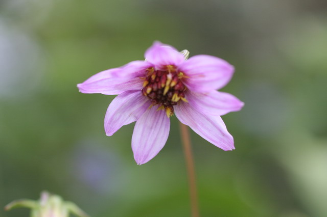 Ich hab eine Mini-Dahlie, Blüten nur so groß wie ein 10 cent-Stück. Blüht blau, auf dem Foto sieht sie eher lila aus, wenn es nicht so heiß ist, ist sie wirklich blau. Laub ist dunkelgrün und sie wächst etwas in die Höhe. Samen stammt aus England, hier hat sie noch keinen angesetzt.Kennt sie wer?