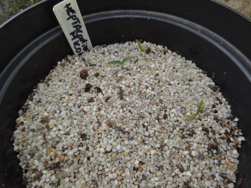 Genus/Species: Heptacodium miconoidesDeutsche Name: Sieben Söhne des Himmels Strauch, HerbstjasminSamen Herkunft: Semences du Puy, FrankreichAussaat: 3 Februar 2015 draußenKeimung: Anfang September 2015Anmerkung: Heptacodium keimt immer relativ spät im Jahr aber September ist richtig spät. Das Problem ist jetzt die Überwintering der Sämlingen.