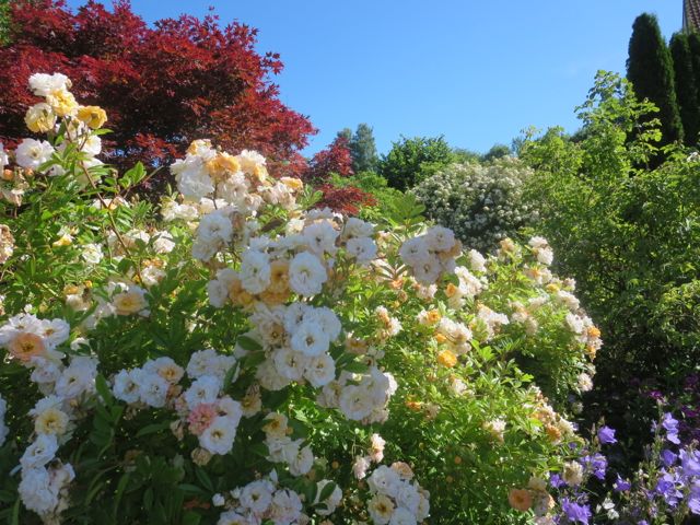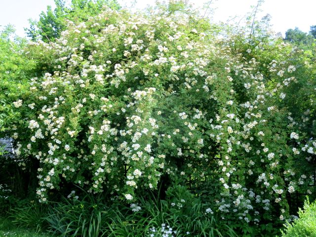 und zum letzten Mal mein Rambler 'Goldfinch', in den ich mich vor 14 Jahren auf einer Rosenreise durch Südengland in Mottisfont Abbey verliebt hatte und der dann umgehend Eingang in meinen Garten fand.