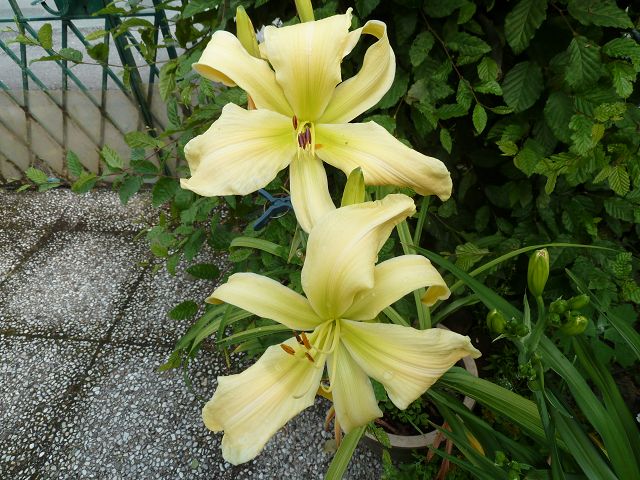 :-*und es blüht ein wunderschöner sämling von mil. mitchel von der ich 5 stück mal gekauft habe weil sie ja soooooooo schön ist, heut kann ich sie nichtmehr ausstehn und breche schon ab und an knospen ab am abend damit ich sie nicht sehn muss, die blüht bei mir in der hitze oft bräunlich morbid