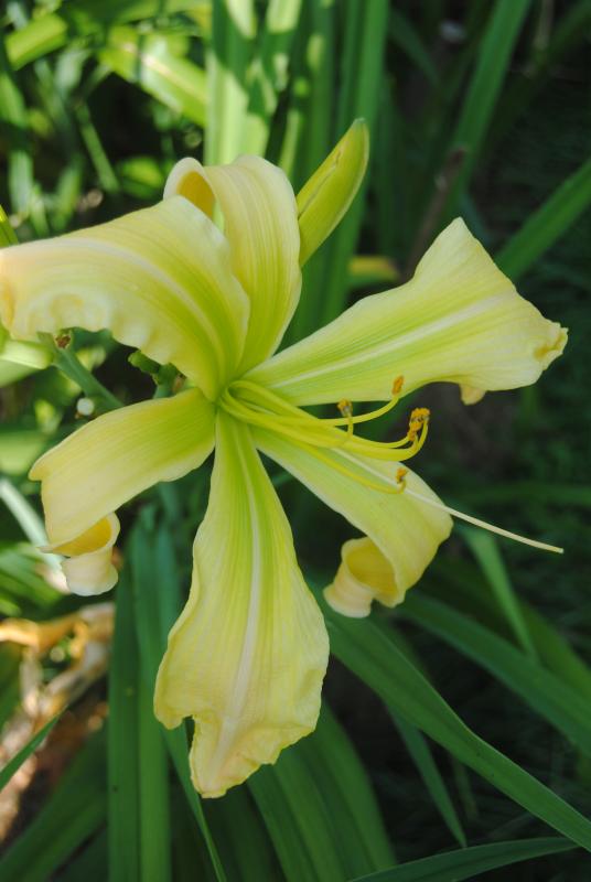 Also wenn ich mir die Blütenfülle auf Waldemoors Fotos so anschaue, dann bin ich doch glatt geneigt, demnächst mal beim Nachbarn nachfragen zu gehen, ob dessen Federvieh nicht auch mal bei mir "geschäfteln" kommen könnte... scheint ja die reinste Tagliliendroge zu sein. Oder ich schau, wo die Äpfel der Reitpferde auf der Wiese in der Nähe gelagert werden, denn bei Martina und Mathilda gehts ja auch in die Vollen! Hier gab es heute früh sehr schöne Blüten und ich Dödel lass' sie ungeknipst stehen und gehe zur Arbeit... Urlaub zu Ende ... und natürlich waren sie dann abends nicht mehr so schön. Mit Ausnahmen. Eine davon Augenfreude, die ich dieses Frühjahr ersetzt habe, nachdem ich die Päppelei an der letzten Montagsausgabe Leid war. Als Vorgeschmack für kommende Saisonen ein schönes Blütchen.