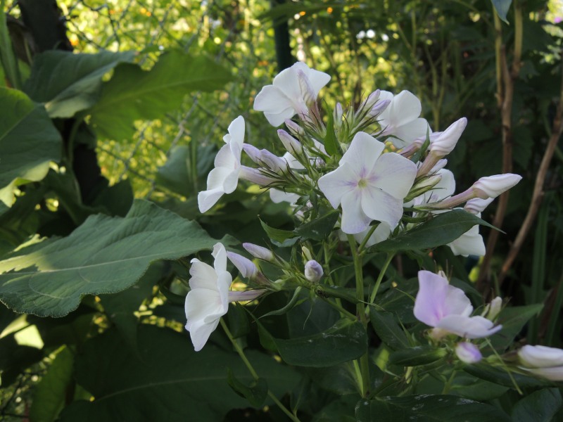 Es gibt ja Großblattphloxe und Kleinblattphloxe. Unterscheiden die sich sonst noch irgenwie diese beiden? Im Wuchs oder in der Stabilität? Sind weiße Phloxe eigentlich sonnenverträglicher oder empfindlicher als andere? Die Phloxe vertragen bei mir die Hitze recht gut. Während der Cornus zusammen brutzelt, stehen die meisten da wie eine Eins. Ich habe aber trotzdem nochmal zwei umgepflanzt, weil die nicht ganz glücklich aussahen und einer davon hat einen Tag später schon die Blätter wieder angehoben. Eine wirklich dankbare Pflanze. Reagiert sofort auf Standortwechsel mit Erholung.