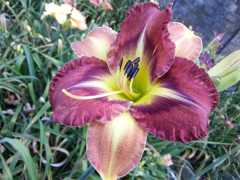 Diese hier ist vom züchterischen Aspekt interessant, weil eine tetraplodisierte Wildform, H. hakuunensis, von Tambergs eingekreuzt wurde (Rock Solid X H. hakuunensis x Substancial Evidence). Alle Sämlinge aus der Kreuzung sehen ziemlich gleich aus und sind sehr hoch. Die Farbe hat allerdings einen deutlichen Braustich. Mir gefallen sie trotzdem.