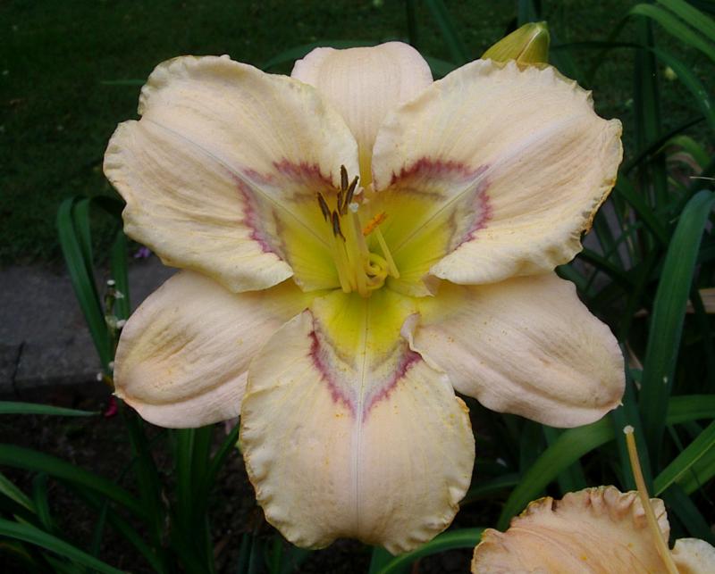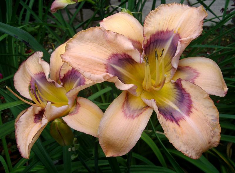 Smlg aus Isle Of Dreams X Delta Blues, Wobei die Digi die Intensität der Farben nicht wiedergibt. Die Grundfarbe der Blüte ist tief Aprikose, im Auge kräftig blau violette Töne - ein krasser Farbkontrast