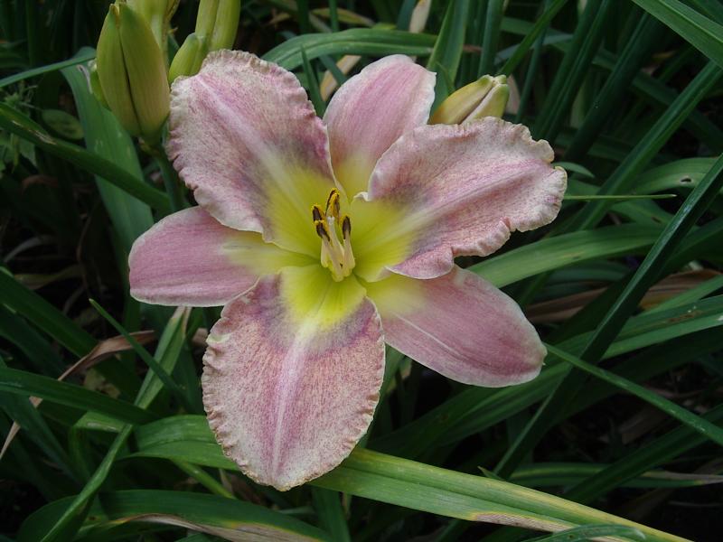 Erstaunlich, wie wenig Footprints in the Sand zur Augenfarbe beigetragen hat! Und Dragonfly Dawn ist ja nun auch nicht gerade rosa, von seinen anderen Nachkommen hat keine ein rosa Band...gefallen 'tut' er mir !Letzte Blüte eines zwar nicht blauen, aber wunderschönen zartrotäugigen Sämlings aus der Kreuzung Footprints in the Sand x Dragonfly Dawn.