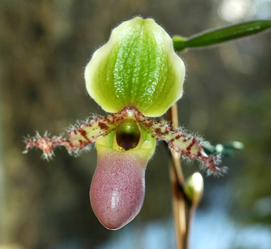 Paph. chamberlainianum hat normalerweise Streifen in der Fahne und vererbt sie häufig, deswegen tippe ich eher auf etwas in Richtung Paph. primulinum oder auch Paph. glaucophyllum. Insofern, robinie, können wir Dir hier nur Anhaltspunkte geben.