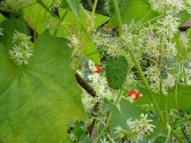 Das ist die Stachel- oder Igelgurke (Echinocystis lobata).