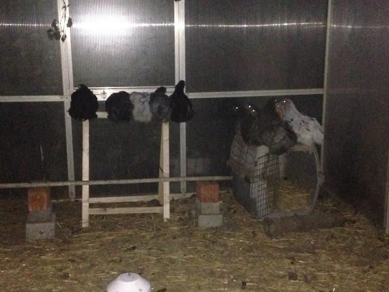 Vor dem oberen Sitzbock ist eine längere Stange, an der nur seit gestern niemand mehr Interesse hat, weil der Bock da ist. Morgen werden vermutlich zwei Hennen und ein Hahn abgeholt und dann gibt´s eine lange Stange für alle.