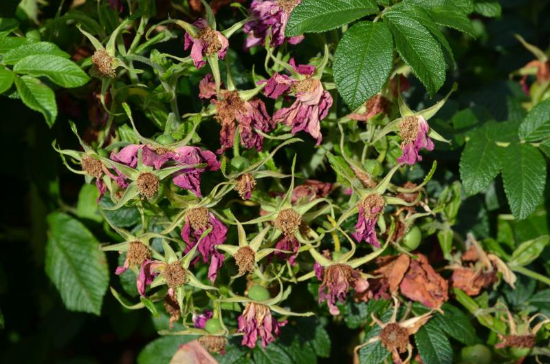 Von mir auch ein paar "Greise".'Moje Hamarberg' darf Verblühtes behalten.Sie blüht und duftet, trotz Hagebuttenbildung, den ganzen Sommer lang! :D