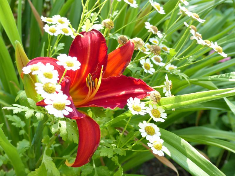 Die beiden mögen sich,könnte die Hemerocallis 'Jonny Ward' sein?Es ist eine etwas niedrig wachsende, für den Vordergrund.