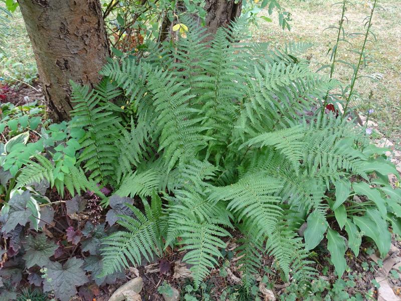 Ja, der ganz gemeine Wurmfarn, steht hier in allen schattigen Ecken und sieht unverschämt gut aus.Noch ist nix braun, ich hoffe, daß bleibt so.