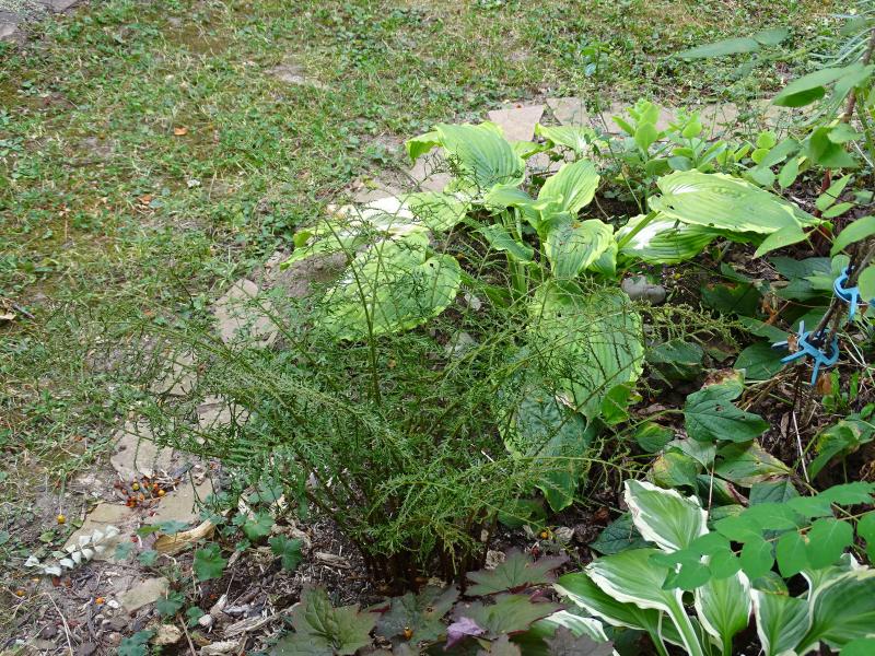 Der gedeiht hier in halbschattiger bis lichtschattiger Lage auf lehmigem Lössboden an mehreren Stellen im Garten sehr gut und macht große sterile und fertile Wedel.Er braucht aber einige Zeit, um ingangezukommen.