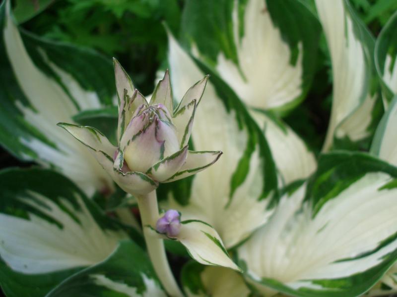 Das scheint ihr gut zu gefallen, claire. Hast Du die 'Violetta' auf dem Pflanzenmarkt eigentlich bekommen und könntest bei Gelegenheit ein Vergleichsfoto einstellen?Heute freute ich mich über diese aparte Knospe an der Hosta 'Fire and Ice':