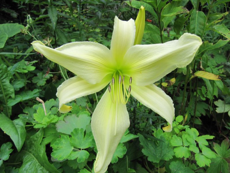 Endlich kann ich auch mal diesen Sämling frisch aufgeblüht bewundern und nicht nur abends nach einem erschlaffenden heißen Tag. Er gefällt mir gut, zumal er auf hohen Stängeln blüht. Die Eltern stammen von Callis.