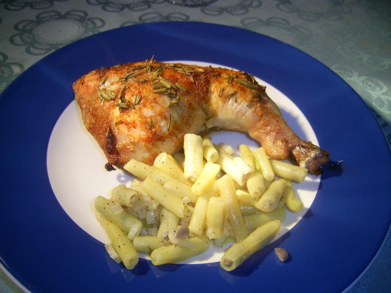 Ich hatte Aprikosenhuhn. Eigentlich ein Tajine-Rezept, ich hatte statt Hühnerbeinen ein "Hühnersteak", ein ausgebeintes Bein, das erstmals angeboten wurde. Hoffentlich gibt's das bald wieder - eine Superidee, denn die Haut ist dran, und es ist ratzfatz fertig. Ich schnitt es jedenfalls in Happen, dazu kommen: Aprikosen, Tomaten, Zwiebeln, Rosmarin, Ingwer, Chili, Zimtstange, S + P, Basilikum. Im Originalrezept (das getrocknete Aprikosen vorsieht, ich hatte frische) kommt noch Honig dazu - meine Aprikosen sind so zuckersüß, daß das zu viel gewesen wäre. Das ganze schnell in der Pfanne geschmurgelt. Dazu gab es nix.Absolut großartig.