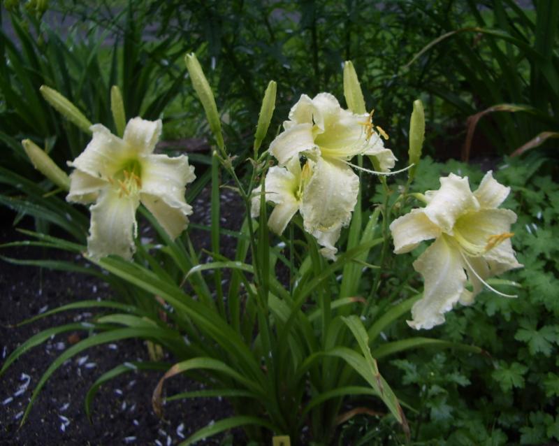 sietuwohl? Da haben wir doch ein wunderbares Beispiel für die Vorzüge von fast weißen Sorten. Großartige Sorte, tolles Bild. Alles gut.Floddern tut's heute und überhaupt in diesem Jahr bei Margo Reed Indeed (Murphy 2004). Die Pflanze braucht noch etwas Zeit, um sich im neuen Garten einzuleben, aber ab dem kommenden Jahr sollte es dann eigentlich wieder in höheren Stockwerken und auch durchaus geordneter zugehen. Der Habitus ist dennoch insgesamt filigran.