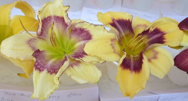 Was auch interessant war, war eine Präsentation von Taglilienblüten auf zwei Tischen in Wassergläsern, die Ronald Albert jeden Morgen frisch aus seinem Garten mitbrachte (die Blüten, nicht die Gläser