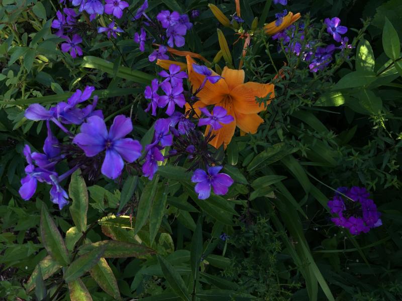 neu in diesem jahr ist ein sämling von (vermutlich) blauer morgen/blue paradise, vielleicht hat am einheitlichen violett düsterlohe mitgewirkt, ich bin gespannt, wie der sich die nächsten jahre zeigt. rechts unten, das vergleichsweise unscheinbare.