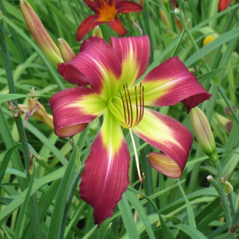 So, das war's. Irgendjemand wollte was über Trends wissen. Die Trends, die sich in den USA ankündigen (zunehmende Rückkehr zu Dips, Weiterentwicklung von Füllungen und Augenmustern, Streifen und Batikflecken) sind in diesen Gärten - und in unseren europäischen Gärten allgemein bis auf ganz vereinzelte Ausnahmen - noch nicht angekommen. Man ist schon froh, wenn man ein paar Spider und UFos sieht. ;)Aber anregend war es mal wieder. Und ich habe tatsächlich 5 neue Taglilien gekauft, weil mich das Kreuzen immer noch in den Fingern juckt.Da werden eben ein paar mehr von den älteren gehen müssen.Einer von den neuen ist Ice Quake, den ich sogar geschenkt bekommen habe.