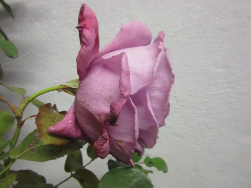 Heute habe ich, völlig ungelogen meine erste selbst gekaufte Rose mit nach Hause gebracht. Dort wo ich sie herhabe war sie eine Falschlieferung in einer andern Sorte, man hat sie mal als "Möglicherweise Mainzer Fassnacht" bezeichnet.Diese (letzte) Blüte hat einen Durchmesser von achteinhalb Zentimetern, die Farbe ist bei jüngeren noch "blauer", sie fiel mir schon vor ein paar Wochen auf, habe sie damals vergessen. Der Duft ist eher rosenuntypisch, zumindest nehme ich das an, habe ihn sofort mit dem von Paeonien assoziiert, weswegen ich auch sehr gerne ihren Namen kennen würde. Falls die Pflanze irgendwann mal kaputtgeht und ich die Sorte nachpflanzen will. Was sagen die Kenner? Ist `Mainzer Fassnacht´ möglich, wahrscheinlich oder unmöglich? Ich weiß, hundertprozentige Identifizierung schwierig...
