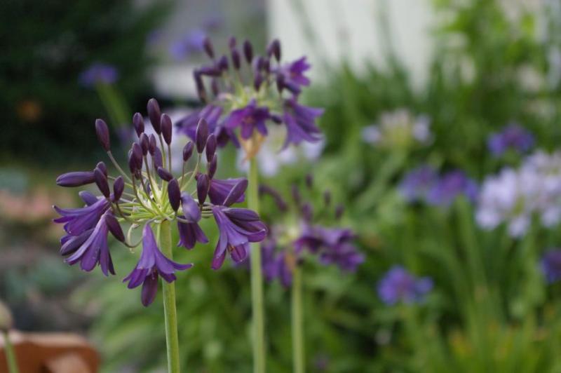 Ich habe heute Knospen und Blüten gezählt und komme auf 19... Mein Agapanthus kommt auch aus den Niederlanden, aber aus einem schnöden Gartencenter. Es ist "Charlotte", also ein kleiner und ich habe ihn im zweiten Jahr. Den Winter hat er im Gartenschuppen verbracht - das Laub ist, vermutlich auch weil es recht mild war, fast ganz geblieben. Er hat im April Manna Cote bekommen. Ein wirklich dankbarer Blüher.