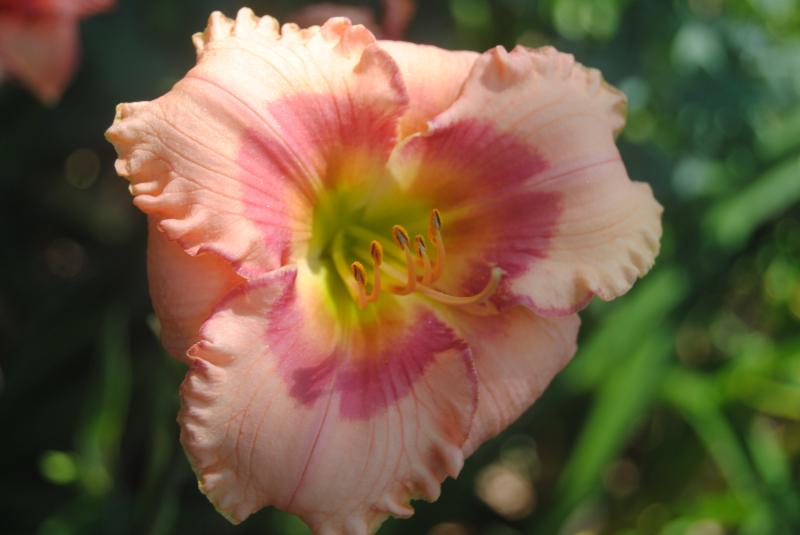 Gerade habe ich mal in der Datenbank nach dieser Murphy-Sorte geschaut. Dort stehtwith stippled rose edge above apricot throat.Was mich interessieren würde: ist der rosa Rand wirklich gepünktelt und wenn ja bei jeder Blüte?Und als Kontrast, aber auch mit pink:Panama Pink