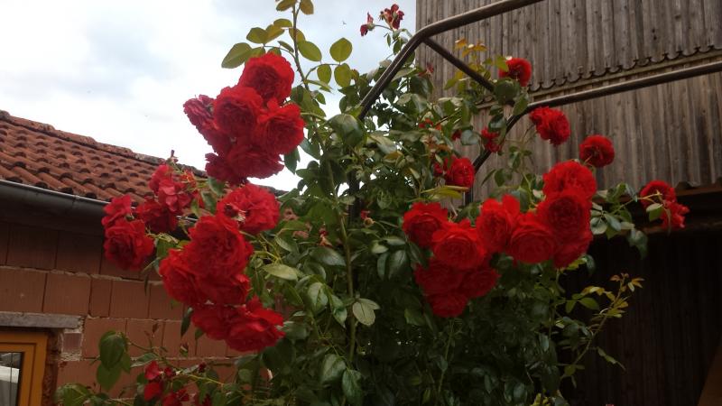Bei meinen roten Rosen bin ich mir nicht mehr ganz sicher, wer wer ist. Hier koennte es olde romeo sein....obwohl neben papa meilland eigentlich mr lincoln und die weitere Verwandtschaft stehen sollteauf dem bild "knallt" die Farbe aber heftigst