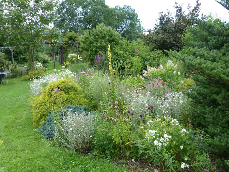 Sehr schönes Beet,Hausgeist.Die goldene Fadenzypresse im Vordergrund wirst du wohl bald weiter mittig pflanzen müssen.Ich habe eine,die ist schon an die 2m.