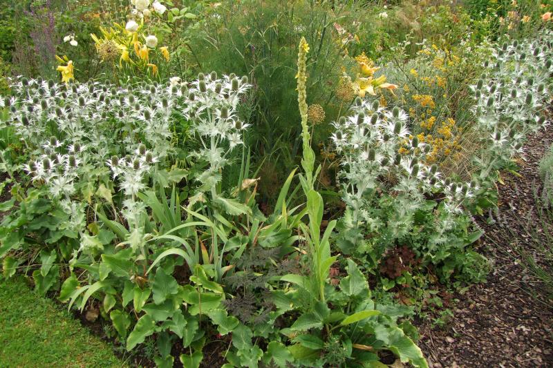 Das bereits bekannte Beet zeigt jetzt Hochsommerpracht...mit Echinacea und Echinops ist die vorherige gelbe Phase beendet!