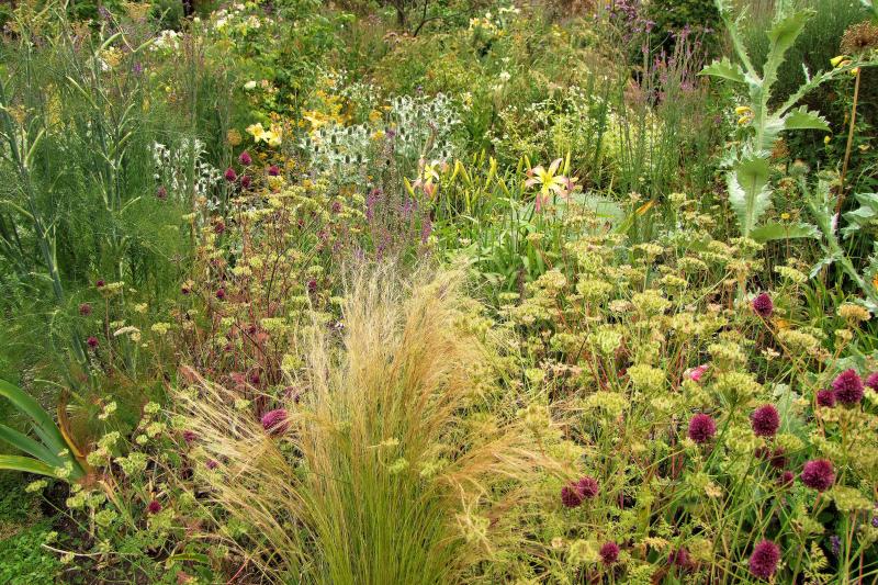Das bereits bekannte Beet zeigt jetzt Hochsommerpracht...mit Echinacea und Echinops ist die vorherige gelbe Phase beendet!