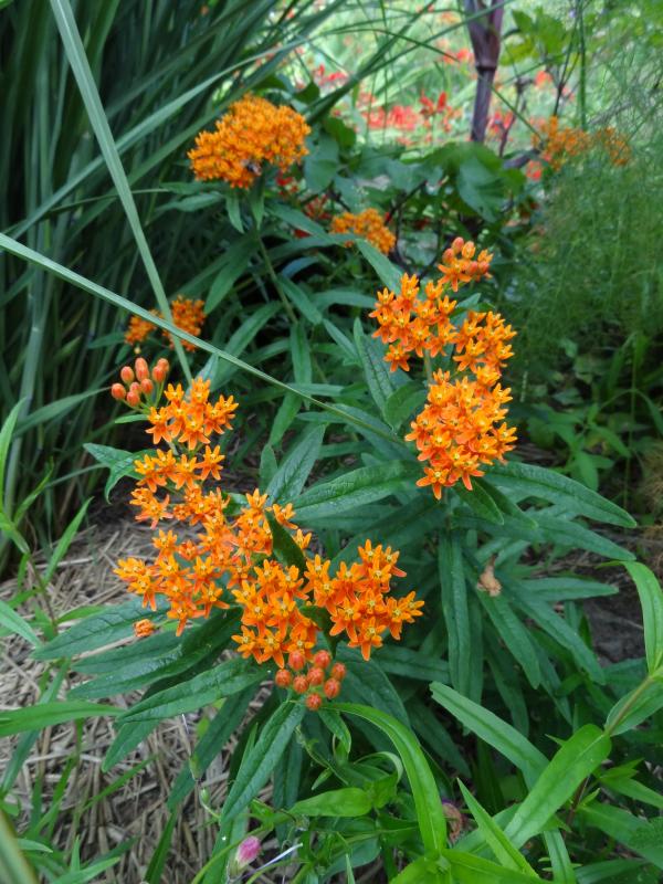 Der blüht hier noch nicht, ich bin schon gespannt. Hoffentlich quietscht das Rosa nicht zu sehr. ;DKaum geliefert und schon erblüht: Asclepias tuberosa.
