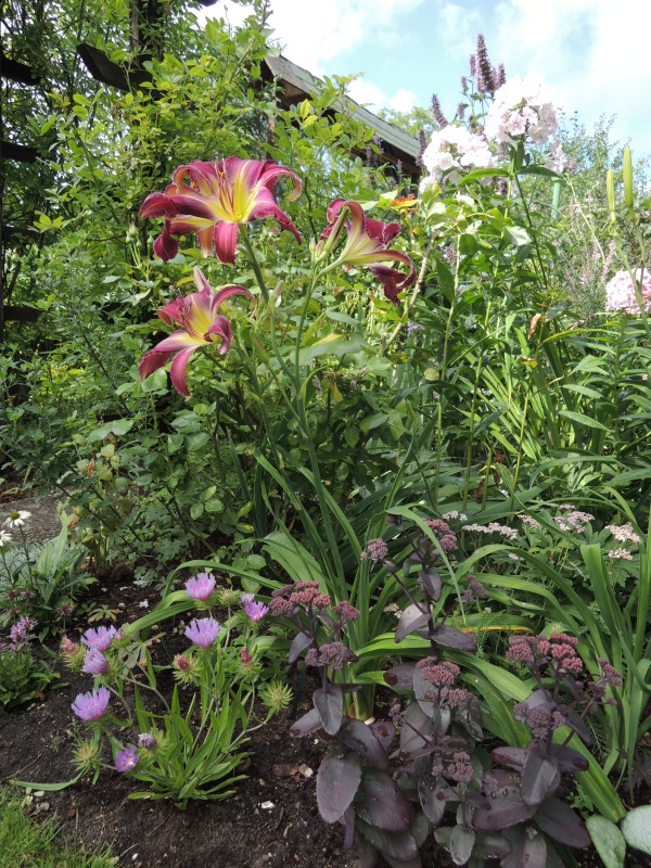 Ich bin überrascht, dass bei günstigem Licht und Blickwinkel sogar mein Chaosbeet gar nicht mal sooo schlecht aussieht. Die Bepflanzung ist noch katastrophal, da ich ursprünglich davon ausgegangen war, dass es sich um ein Schattenbeet handelt. Das ist aber nur im Winter der Fall.