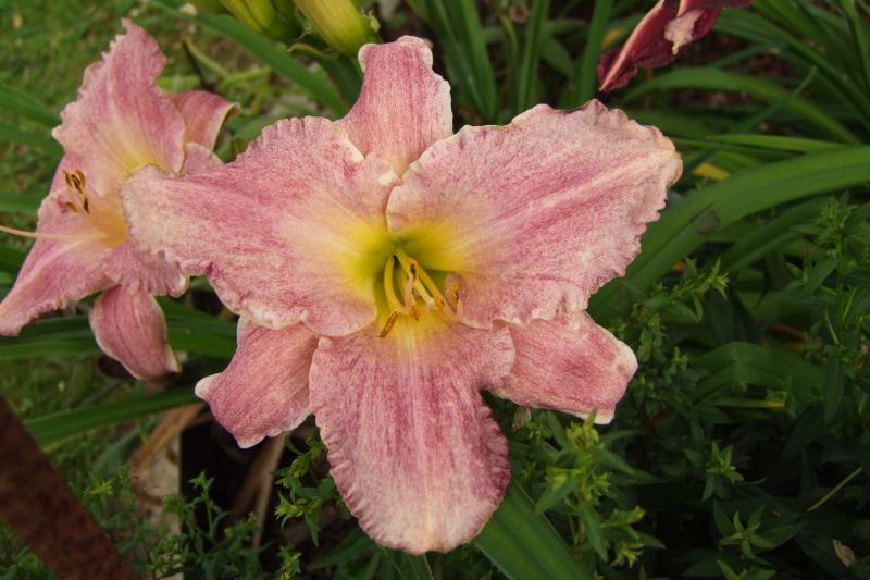 ?Die Blüten sind größer als bei der Mama (16,5 cm) und liegen bei im Schnitt 19 cm. Manchmal waren sie morgens (das ist bei mir im ersten Rundgang zwischen 7 und 8 Uhr) noch nicht ganz geöffnet, aber bis mittags dann doch. Und hoch ist der Blütenstiel, 86 cm. Passt also zu der Blüte.Tja, die Farbe...Eigentlich bin ich ganz hingerissen von diesem Überraschungsei. Doch vermutlich ist es ein "Öks" ?Was meint ihr denn ? Ist das "was" ? Habt ihr etwas ähnliches ? Hui oder pfui ?