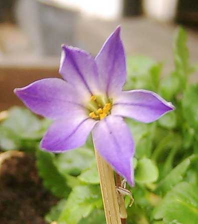 Toller Frühlingstag heute in Südengland mit Supersonnenschein bei 18°C und was da nicht so alles richtig fleißig austreibt: verschiedene Fliedersorten , Blätter beim bodnantense , schön duftende Blüten an Mahonia aquifolium.Und was hab ich doch da entdeckt... Das ist ja überhaupt die feinste Zwiebelpflanze: zwar sehr heikel aber doch von unglaublicher Schönheit.IPHEION UNIFLORUMDas hier ist die Sorte 'Froyle Mill'