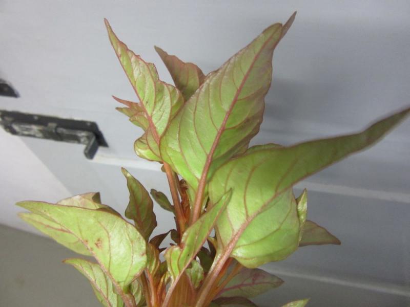 Fuchsschwanz kenne ich nur das Ackerunkraut und das, was wie eine rotlaubige Gartensorte davon aussieht, wie auf dem Bild von Scabiosa. Die beiden haben, meine ich stärker hervortretende Blattadern, labberigere Blätter und, zumindest das Unkraut helle, fast weiße Blattunterseiten? Die Blätter der unbekannten Pflanze sind härter und fühlen sich fast lederig an. Gibts Amaranthus-Arten, die das auch haben? Es existieren sicherlich wesentlich mehr als die beiden die ich kenne, mit denen hat die Pflanze eher wenig gemeinsam.Neu-Guinea-Impatiens war auch einer meiner ersten Impulse, als sie mir die Pflanze von Ferne zeigte, aber auch hier sind die Blattunterseiten heller (mein ich zumindest) und der Stiel sukkulenter.