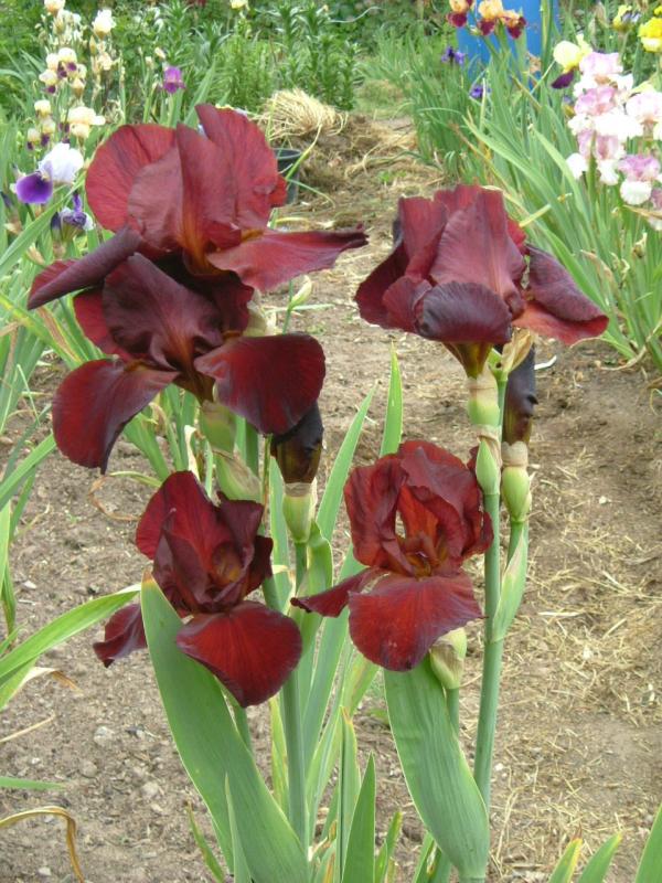 `Tumultueux´ sieht gut aus, ich schleiche auch schon eine Weile drum rum, sie ist aber tatsächlich auch nicht so recht das Gewünschte. Ich hätte "einfach" gerne eine Sorte, deren Hängeblätter (bei gelbem Dom) ein möglichst reines und intensives (nicht schwarzes) Blau zeigen. Für sachdienliche Hinweise wäre ich dann dankbar.Das richtige Rot ist doch bei den Iris soviel ich weis immer noch unerreicht? Das reinste welche ich kenne, zeigen die Hängeblätter einer Namenlosen, die Irisfool im Frühjahr hier im Forum unter Vorbehalt als `Natchez Trace´ identifiziert hat. Allerdings wie gesagt nur die Hängeblätter und dies kommt leider auch vom Braun herHallo KrokosminánAls ich meine Iris für die Bestellung ausgesucht habe, ist mir die Tumulteux aufgefallen. Sie hat gelben Dom und blaue Hängeblätter allerdings sind die nicht ganz dunkel blau und haben einen braunen Rand. Wird wahrscheinlich nicht ganz das was Du suchst.Ich werde daran denken dass Du eine Iris mit gelben Dom und dunkel blauen Hängeblättern suchst. Wenn ich etwas sehe was Deinem Wunsch entspricht werde Dir schreiben.Danke für Deine Empfehlung betreffend Betty. Mir gefällt sie auf Deinem Photo sehr gut. Wird gekauft. Die Edith habe ich auch – hat im letzten Jahr zum ersten Mal geblüht. Es tut mir leid dass sie für Dich eine Enttäuschung war. Mir ist ähnlich mit der Ambrosie gegangen. Ich habe mich auf die weinrote Farbe gefreut (seit Jahren suchte ich echt rote Iris und war immer wieder enttäuscht alle waren ehe braun als rot). Als sie endlich blühte war sie ehe wie Nuit der noces nur dunkler aber dann mit laufe der Zeit (sie blüht ziemlich lange) veränderte sie ihre Farbe wurde dunkler und rötlicher aber ganz weinrot ist sie nicht, aber sie sieht ziemlich genauso aus wie auf dem Cayeux-Photo.HGRoberta