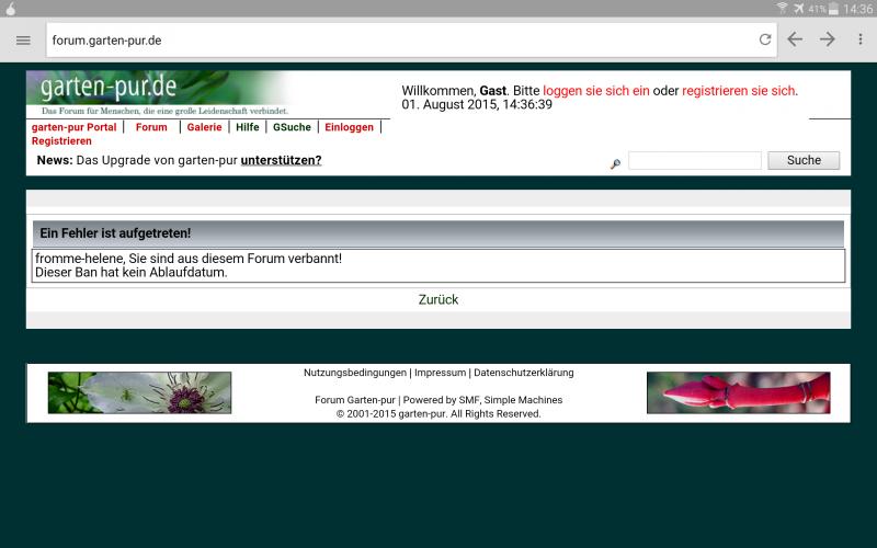 Kann jetzt nur mit einem anderen Browser (Stockbrowser "Internet" vom Samsung Tablet) ins Forum.