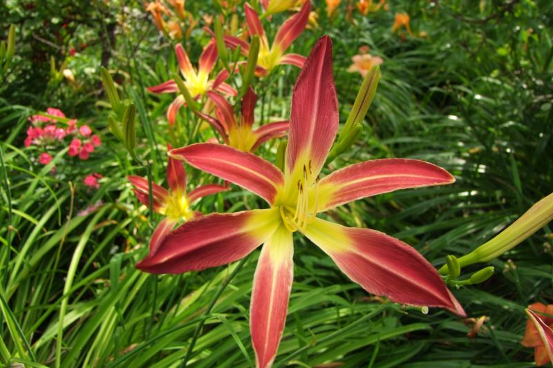 So, jetzt habe ich fast alles an Tagungsbildern in den Computer gedübelt, was der Fotoapparat übrig gelassen hat. Viel ist es leider nicht, denn zwischendurch hat er immer wieder psychedelische Bilder gemacht, war wohl auch taglilienhigh. Echt schade!Ich war am Donnerstag schon da und im Privatgarten der Gastgeber.. und vollkommen erschalgen von der Größe mancher Blüten.Hier mal einige der Riesen, alle gefühlte 40 cm groß