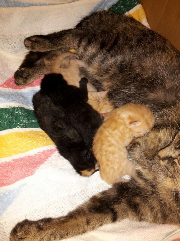 Ich hoffe die Frau Mama ist wohlauf!!?!! :DEs bleibt dabei:Wie besprochen hast Du fuer 2 der kleinen Racker bereits ein Zuhause, wenn sie dann alt genug sind, auch ohne Mama zurecht zu kommen.LGsendet NemiSo, es gibt Neuigkeiten an der Katzenbabies-FrontNr. 1 wurde heute Mittag geboren, so wie es aussieht ein rotes KaterchenNr. 2 kam grad auf die Welt, eine schwarze Katze mit einem beigen Fotenabdruck auf der Stirn ;Dich geb nur wieder, was Frau Mama grad am Telefon erzählt hat. Sehen und Fotos machen kann ich erst am Dienstag. Aber vielleicht schickt mir ja jemand Fotos aufs Handy, dann stell ich die schon früher einMindestens ein weiteres ist wohl noch unterwegs![]()