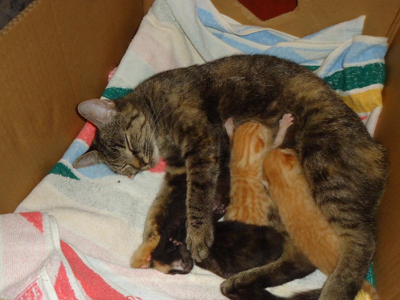 Ja, die sind süss. Die sind ja schon gross, kein Wunder hat die Mama Mühe sie raus zu bringen. oder täuscht das? Viel Glück der Katzenfamilie.