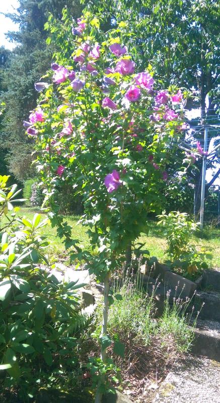 Wow :DHier blüht Alcea Parkrondell. Sie ist aber bei der Trockenheit heuer genau wie die normalen Stockrosen ungewöhnlich niedrig.Hosta 'Chinese Sunrise' blüht in diesem Jahr besonders üppig.