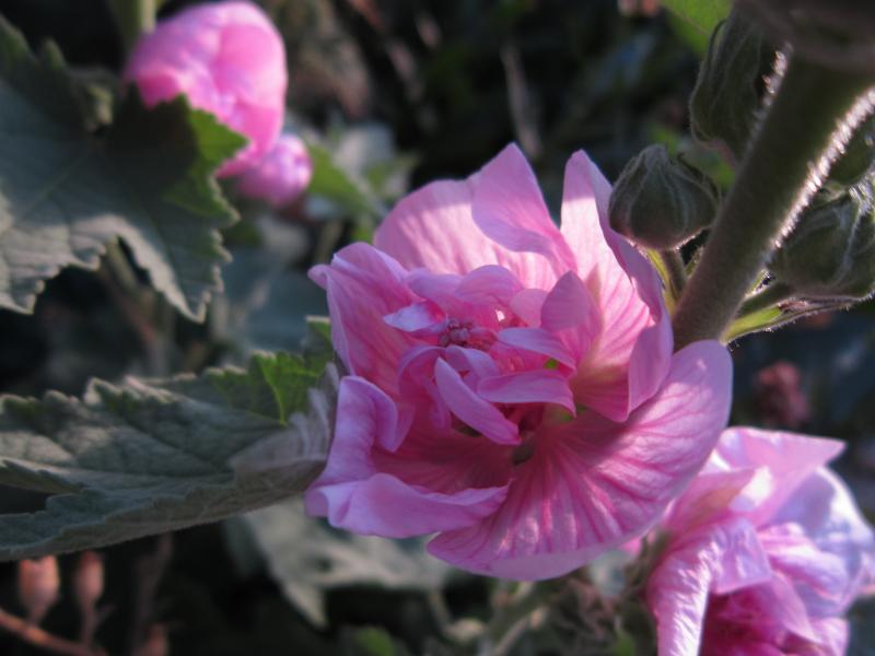 Das ist auf jeden Fall ein Gartenhibiskus.Möglicherweise die Sorte 'Woodbridge'Und noch ein Buch oder Baum?