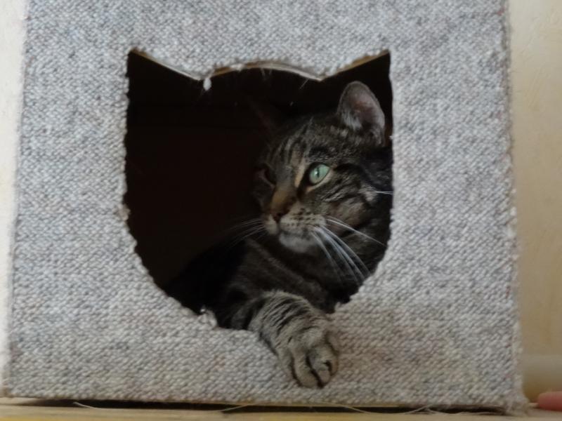 Puh, hier ist es so warm, dass man einfach keine Lust hat, auch nur einen Meter vor die Tür zu gehen. Das gilt auch für Lieschen. Die hat heute morgen eine kurze Kontrollrunde gedreht, sich den Wanst vollgeschlagen, was zur Zeit garnicht so einfach ist, weil man extrem wählerisch ist und der olle Dosenöffner es einfach nicht lernt, das richtige Futter mitzubringen, und sich dann zur Ruhe begeben. Wo? Natürlich auf dem Kachelofen (ungeheizt). Da steht die älteste Katzenbehausung, die wir haben. Und dazu muss man gut einssiebzig senkrecht hochspringen.