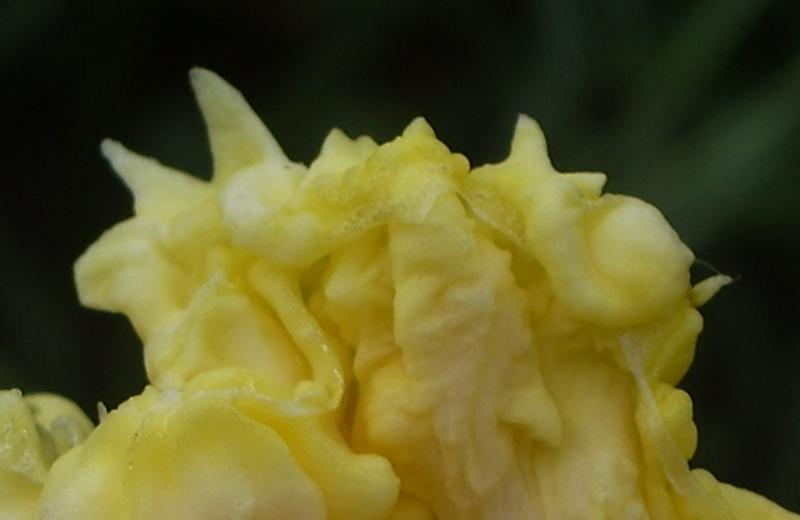 Nicht nur farblich ein Kontrastprogramm und den Vogel abgeschossen hat aber heute diese Blüte, die zwar nicht in die Kamera lächeln wollte (und ins Beet steige ich nicht...), aber dennoch mit einem interessanten Detail aufwartete... Wer sieht's?