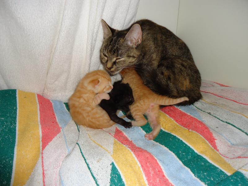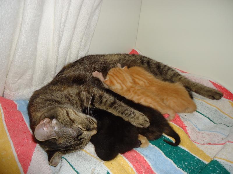 Eine zierliche Mama - und die Jungen werden sie noch ne ganze Weile schröpfen. Aber so ist das eben. Wenn sie gesund ist, dann ist das die Natur. Mutterschaft ist eben anstrengend... Ich habe mein ein Junges in dem Alter bekommen, das hatte eine wilde Katze beim Umsiedeln bei einem Starkregen offenbar vergessen. Die Ohren noch ganz an der Seite, kaum Härchen auf dem Bauch. Das habe ich mit Welpenmilch aus einer Liebesperlenflasche aufgepäppelt. Als es mit ca. 5 Wochen selbst fressen konnte, kam es zu einer Nachbarin. Die hatte einen Schäferhund, der liebte kleine Katzen und hat das Baby immer sauber geschleckt. Anschließend mussten wir es nur noch abtrocknen. Das war ein Paar. Die kleine Jule hat dann immer auf dem Hund geschlafen und hatte später beim Futter auch immer den Vortritt. Wahre Liebe eben.